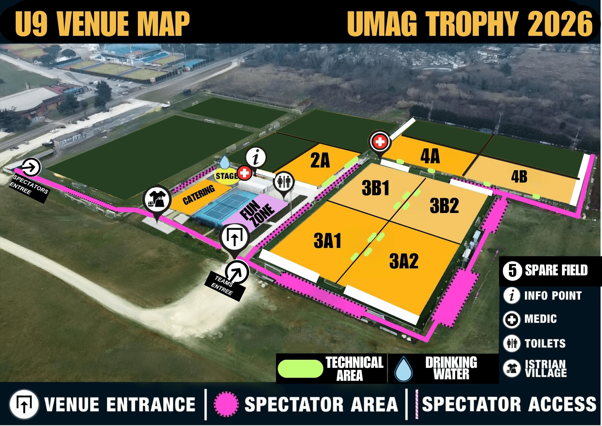UMAG TROPHY 2026 MOBILE APP BASIC INFO U9 BASIC INFO (ENG) U9 OSNOVNE INFORMACIJE (SLO) EVENT PHOTOS LINK TO PHOTOS VENUE MAP AND OPENING CEREMONY VENUE MAP U9 OPENING CEREMONY MAP U9 LIVESTREAM LIVESTREAM COMPETITION REGULATION ENGLISH SLOVENSKI HRVATSKI ITALIANO TOURNAMENT SYSTEM – 16 groups TOURNAMENT SYSTEM – 8 groups VISITORS INFORMATION CODE OF CONDUCT PARKING MAP UMAG TROPHY MERCHANDISE STORE UMAG TROPHY GIVEAWAY CONTEST RULES